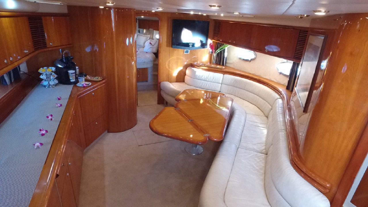 Welcome aboard Maui's premier cruising luxury yacht. Departing from the Ma'alaea Harbor, this 58' Sunseeker Yacht is equipped with three air-conditioned cabins, with en suite bathroom in the master. suite and beautiul galley area as well as indoor /outdoor dinning space. This vessel is also able to take guests on a private charter to the Molokini Crater as well as visit other popular sites to snorkel and lounge around. For those guests looking to do a little fishing as well, the boat does come standard with Penn International rod and reels along with a knowledgable crew that has fished the waters of Maui for years. The boat also features a unique under cabin storage area where paddle boards and other items can be stored for a fun day out on the water. Guests may provide their own food & beverage though a items can also be catered with advanced notice. A maximum of six (6) guests are allowed on board plus crew. Advance reservations are required for this charter.